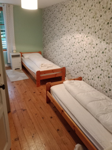 The 2 bedrooms are located on the 2nd floor. We can sleep a total of 6/7 people. The accommodation comprises of a family suite and a double room. The photos above shows the suite which is made up of 1 double room,1 twin and a shower room. This room will sleep up to 5 people plus a cot. The second double room also has an ensuite shower room.